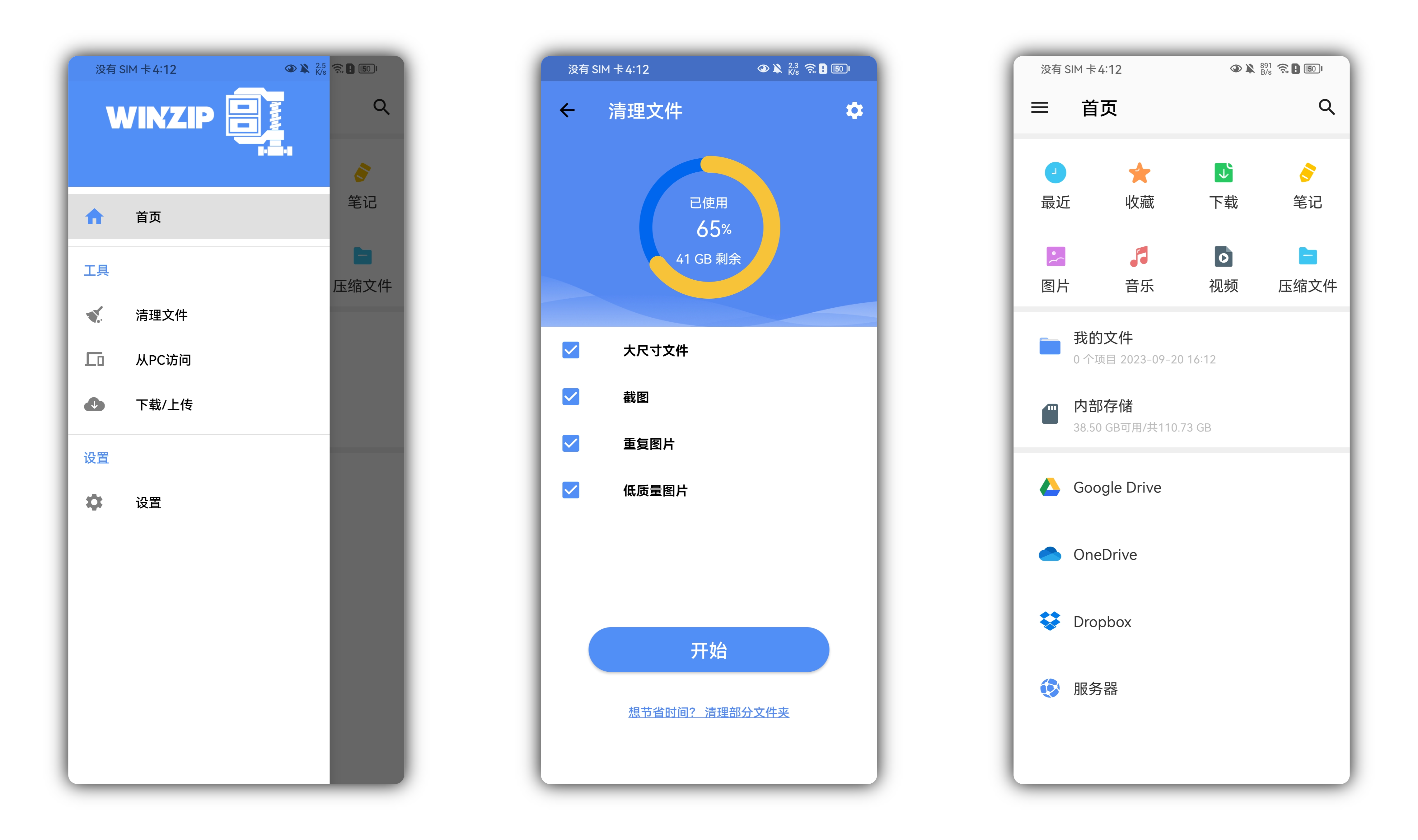 WinZip,世界排名第一的压缩工具,可以让你很轻松地在Android设备上创建,解压和分享Zip文件!压缩文件以方便共享和存储,并扩展您的空间和存储限制。打开和保存压缩文件,无论它们是电子邮件中的附件,从网页下载或从SD存储卡打开的文件。使用银行级别的加密,保护你在Dropbox和Google Drive上的照片,视频和文件。